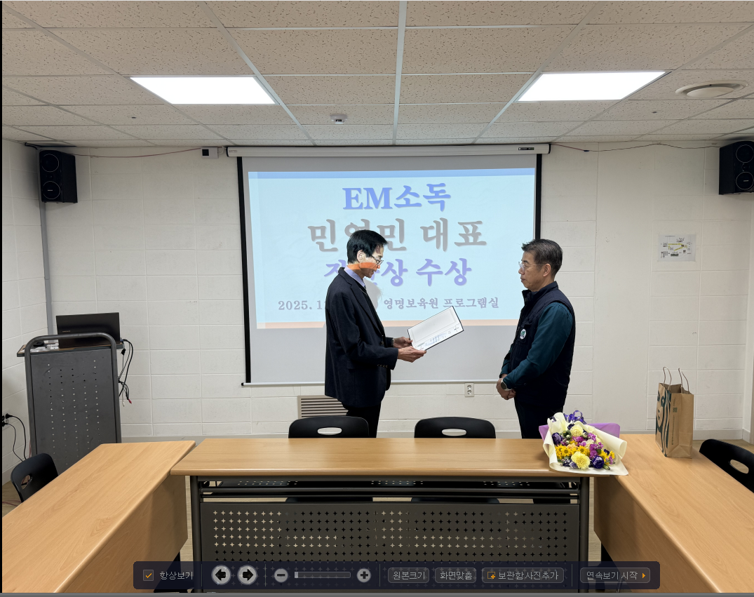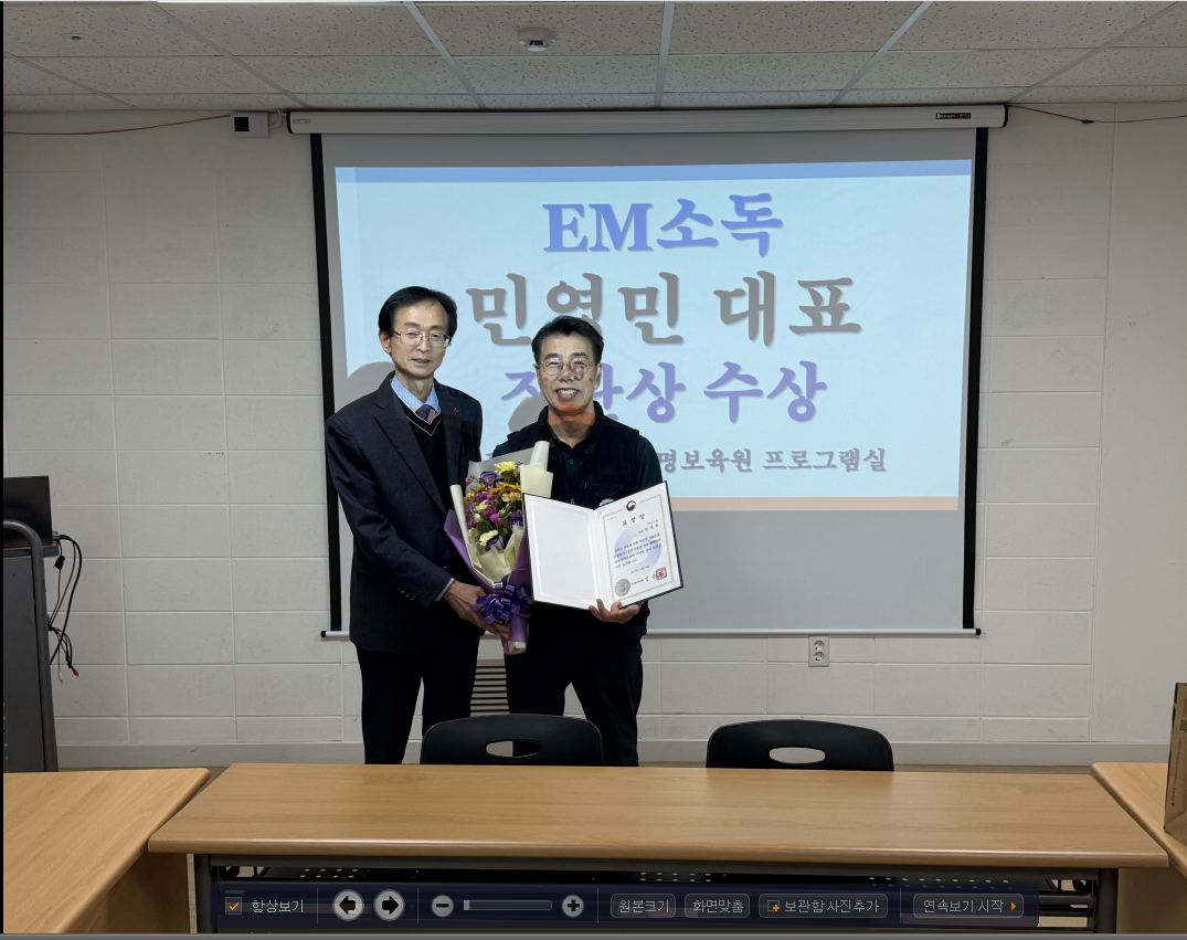 영명보육원에 10년간 방역 봉사활동을 해 주신 EM시스템 민영민 대표님이 공적을 인정받아