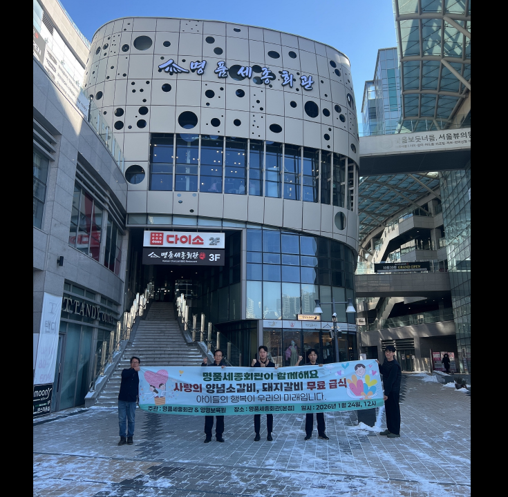 세종 나성동에 위치한 명품세종회관에서 영명보육원 아이들에 대한 외식 지원이 있었습니다.