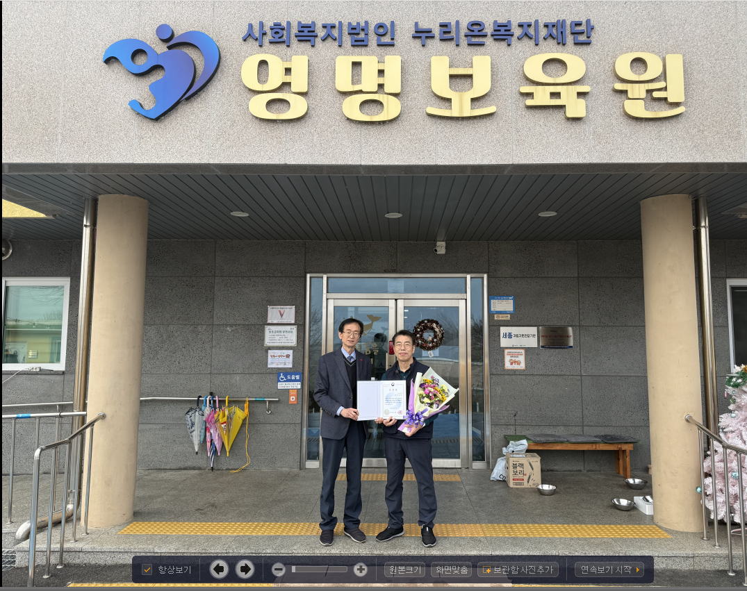 영명보육원에 10년간 방역 봉사활동을 해 주신 EM시스템 민영민 대표님이 공적을 인정받아